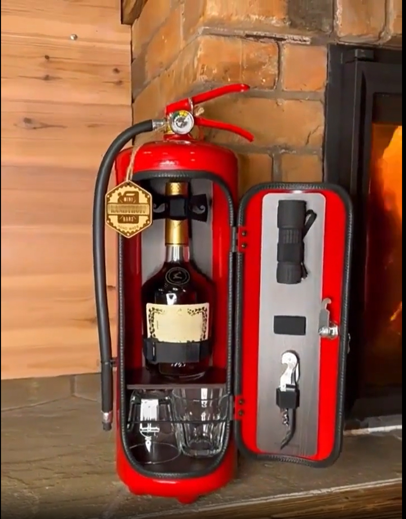 DRŽÁK na LÁHEV ve tvaru HASICÍHO PŘÍSTROJE pro uhašení žízně