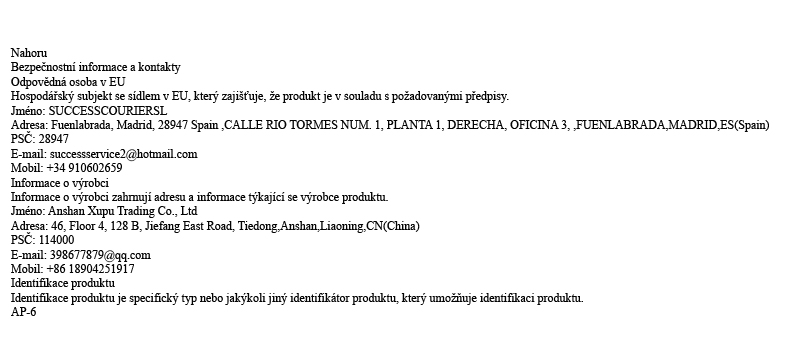 | Informace o výrobci-dodavateli,odpovědná osoba pro v EU |