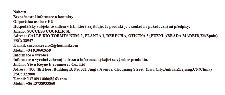 | Informace o výrobci-dodavateli,odpovědná osoba pro v EU |