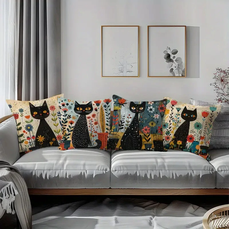 Kočky & Květinové potahy na polštáře.