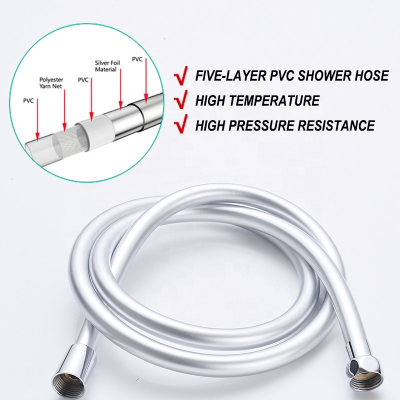 Stříbrná Superodolná PVC SPRCHOVÁ  HADICE 1,5 m GI/2 Univerzální nejpoužívanější rozhraní. Stavěna konstrukčně na velmi vysoký tlak. Závity 1/2” celý popis