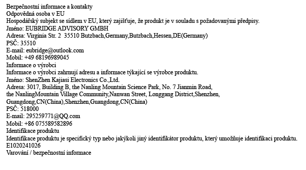| Informace o výrobci-dodavateli,odpovědná osoba pro v EU |