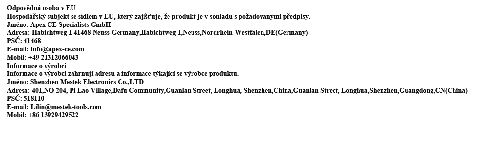 Informace o výrobci-dodavateli,odpovědná osoba pro v EU