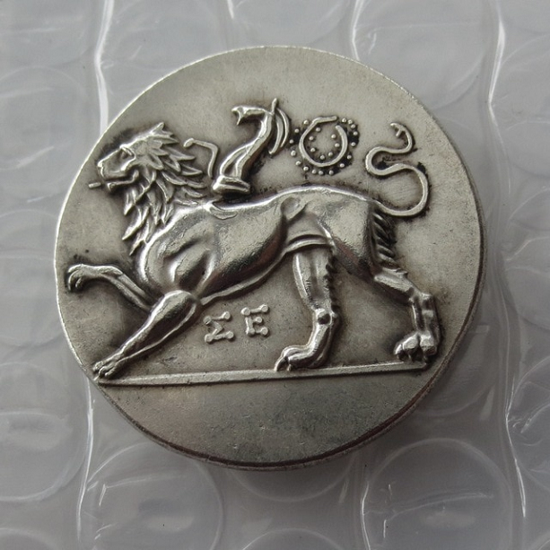Řecká MINCE Imitace Mistrovské ztvárnění CHIMÉRA Vnitřní průměr je cca 58mm, obvod je cca 20cm. celý popis