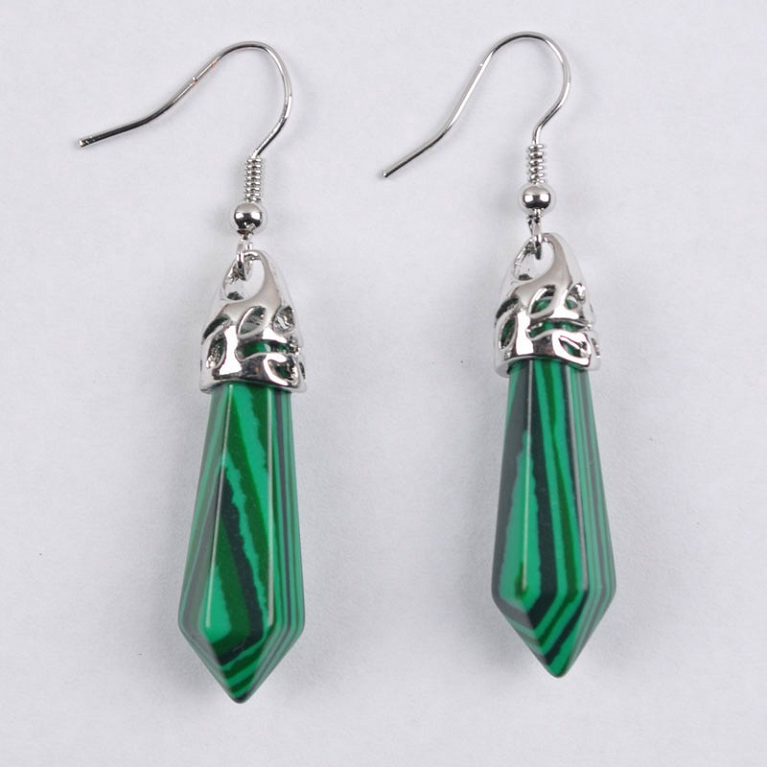 NÁUŠNICE MALACHIT HEXAGON