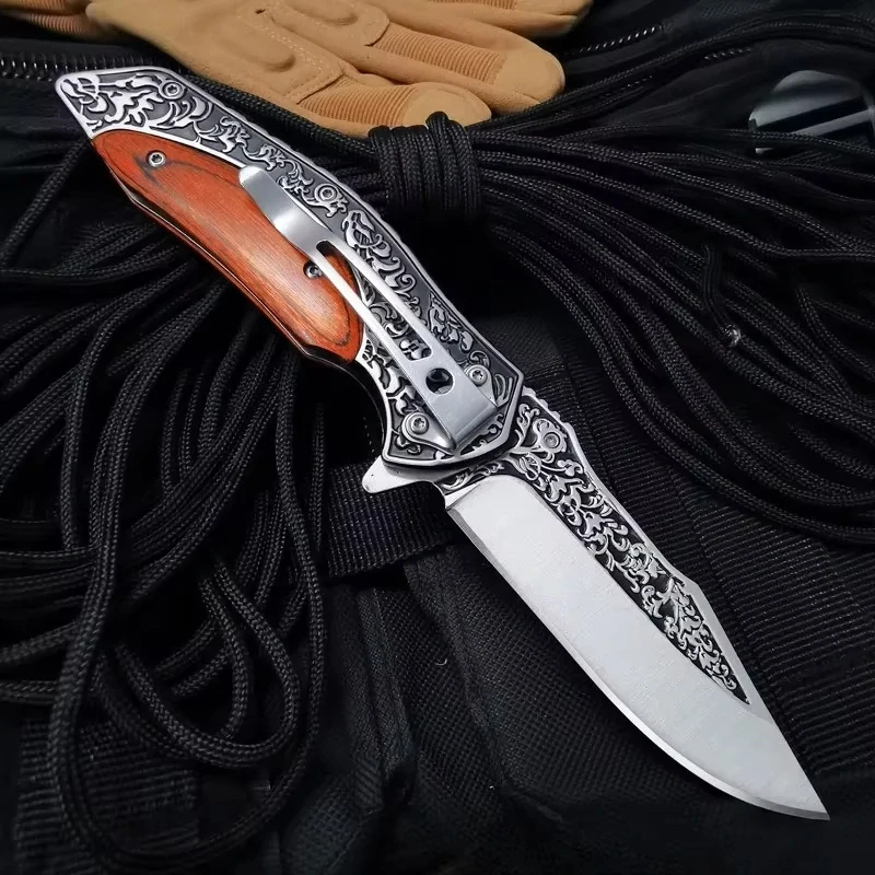 Luxusní Zavírací NŮŽ Nerez ocel. Dřevěná rukojeť Taktický nůž na přežití. celý popis