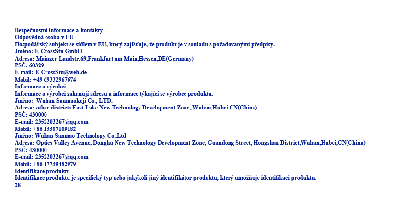 | Informace o výrobci-dodavateli,odpovědná osoba pro v EU |