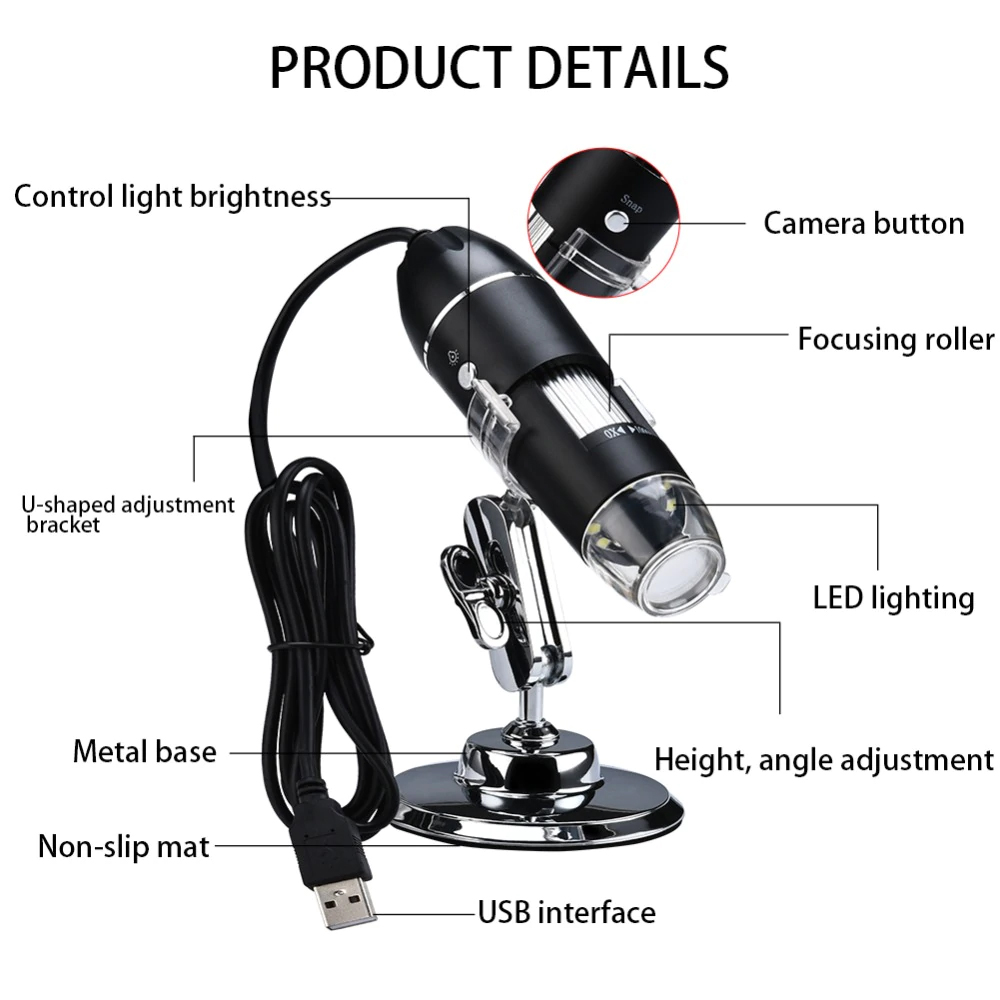 Vysoce kvalitní kapesní mikroskop: Prémiová protiskluzová rukojeť, pohodlná a odolná. Tento přenosný mikroskop je perfektní hračkou pro objevování mikrosvěta například pro děti, vhodný také pro lidi, kteří rádi pozorují hmyz, kůži, desky plošných spojů a mnoho zajímavých předmětů. Kontrola textilu, kontrola šperků, kontrola sbírek jako jsou mince, známky, kontrola bankovek, kontrola tisku atd. Čistá kvalita obrazu, nízká spotřeba energie, vysoké rozlišení